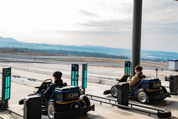 9.81파크는 제주도 애월에 위치한 중력을 이용하여 속도를 내는 친환경 레이싱 테마파크로, 제주 바다를 바라보며 중력가속도(9.81㎨)만으로 스피드를 즐기는 다운힐 레이싱, 한라산 방향을 바라보며 자동회차로 여유롭게 즐기는 업힐 레이싱을 즐길 수 있다. 자료출처 : 대한민국 구석구석(http://korean.visitkorea.or.kr) 펜션에서 차량으로 약 15분, 9.39km